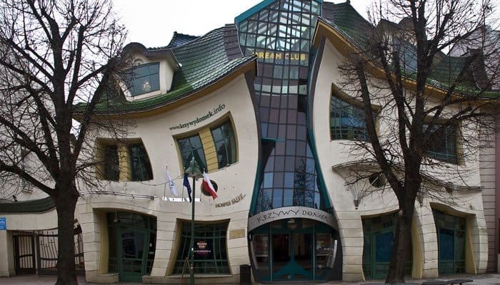 Casa Stramba, sau Krzywy Domek, se afla in localitatea Sopot din Polonia si a fost proiectata de Szotyński si Zaleski. Cei doi arhitecti polonezi s-au inspirat din benzile desenate ale lui Jan Marcin Szancer si Per Dahlberg. Constructia a fost finalizata in anul 2004, iar in interiorul cladirii functioneaza un restaurant, o terasa, o sala de jocuri precum si un centru comercial.