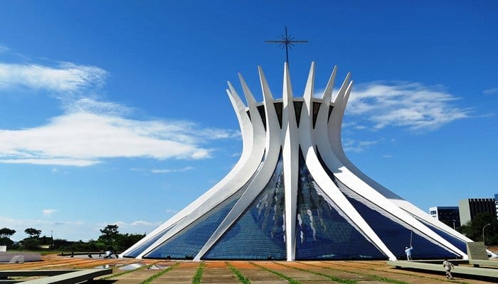 Catedrala din Brazilia, o constructie deosebit de moderna pentru scopului pe care-l serveste, a fost proiectata de Oscar Niemeyer, iar constructia ei a fost finalizata in 1970. Cladirea este construita din 16 coloane din ciment, fiecare dintre acestea cantarind aproximativ 90 de tone.