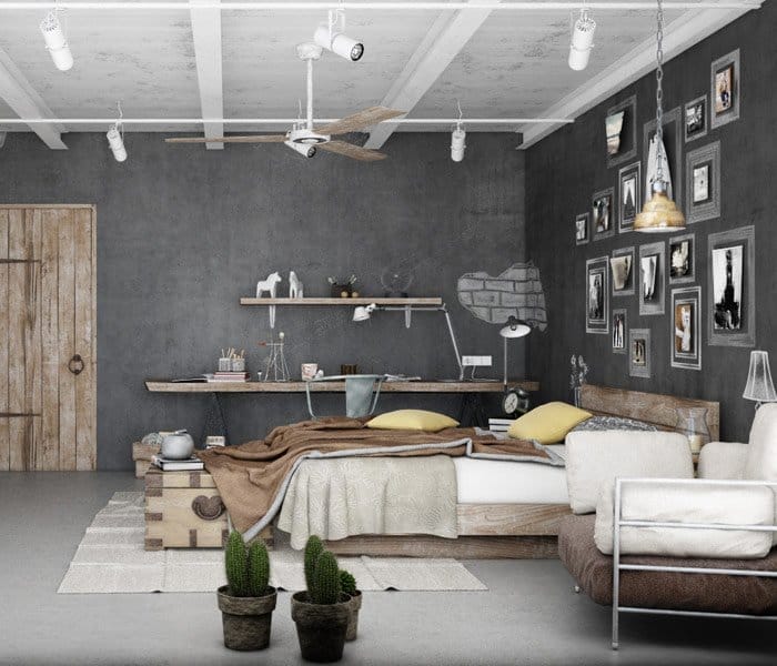 Stilul industrial este un stil rebel prin excelenta, de aceea il regasim mai ales la burlacii aventurieri si la adolescentii nonconformisti in majoritatea filmelor hollywoodiene. Se bazeaza pe un model arhitectural intentionat incomplet, cu pereti neslefuiti, cu bare de fier ruginite si suporturi vechi etc.