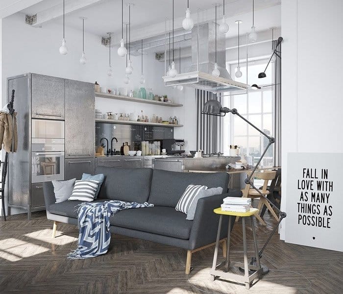 Un element foarte important atunci cand alegi stilul industrial este iluminarea, chit ca vorbim despre lumina naturala sau accesorii de iluminat. Acestea trebuie sa adauge o nota de caldura decorului de ansamblu, care poate parea, altfel, foarte rece si neprimitor din cauza materialelor folosite in mod obisnuit.
