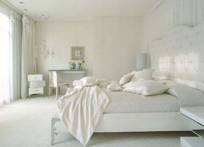 Albul este, de fapt, o non-culoare. Cert este ca pe cat de clasic se dovedeste a fi (pentru ca il intalnim in dormitorele buncilor nostri, dar si in diferite institutii cum sunt spitalele), pe atat de linistitor este. Variatiile de la albul pur la cel crem sau cel rece constituie o alegere veritabila atunci cand vine vorba de dormitor, inspirandu-ti pace si… liniste. Un dormitor alb cu modele florale poate fi totodata foarte romantic pentru tine si perechea ta.
