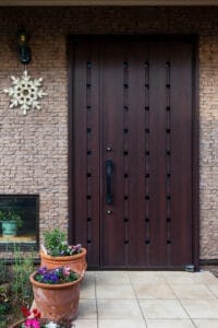 Ornamentele in stil spaniol adaugate la usile cu rama din lemn pot oferi un aspect bogat si texturat. Poti personaliza aspectul peretelui din jurul intrarii si tavanului de deasupra intrarii pentru a se potrivi cu modelele si culorile grilajului si a da intrarii un aer mai impresionant. Poti alege, de asemenea, un model sculptat artistic in lemn sau chiar un obiect somptuos de iluminat in dreptul usii, daca iti doresti ca intrarea sa aiba un aer mai opulent.