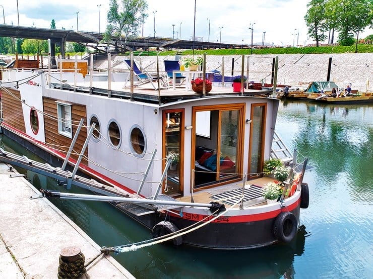 Casa-barca este ancorata in portul Czerniakowskie, pe raul Vistula si ofera conditii importante precum apa, canalizare si electricitate. Plus o priveliste minunata! 🙂
