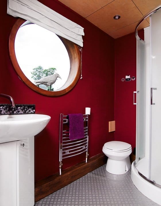Baia este mica si special construita pentru a economisi apa si energie. De exemplu, toaleta consuma mai putina apa decat cele obisnuite. Peretii sunt acoperiti cu wallpaper, iar corbul este doar de decor.