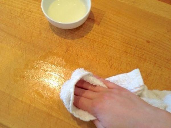 Pentru tocatoare din lemn si alte produse asemanatoare, poti folosi ulei mineral din cocos, palmier sau nuci/migdale. Evita ultima categorie daca esti alergic la nuci sau alune. Pentru extra protectie, amesteca o jumatate de lingurita de ceara de albine cu un anumit tip de ulei din cele enumerate mai sus (240 ml).
