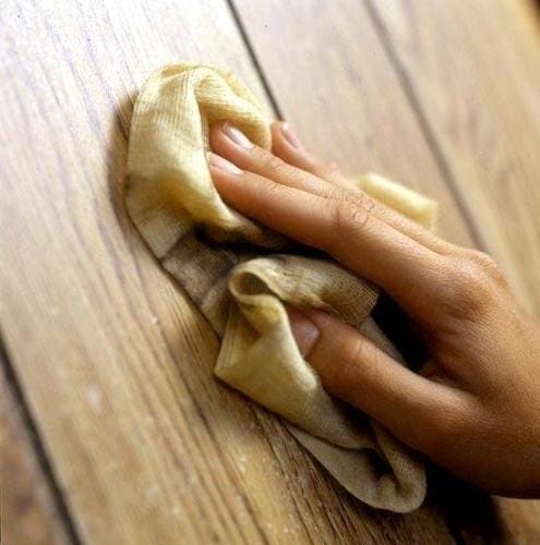 Asadar, intinde bucata de ziar in locul unde urmeaza sa efectuezi procesul si intinde uleiul cu ajutorul carpei din bumbac. Efectueaza totul cu rabdare si aplica solutia pe suprafete mici, pana cand vezi ca lemnul o absoarbe bine.