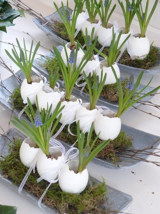 Ce spui de aceasta idee simpla? Ai nevoie de cateva coji de oua, muguri de zambila si muschi de copac. Plus multa indemanare si dragoste pentru frumos.