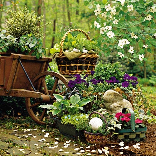 Iar daca vrei niste decoratiuni de paste desprinse direct din povestile copilariei, poti investi ceva banuti in achizitionarea unor iepurasi din ciment sau plastic. Cosuletele din lemn sunt, de asemenea, o optiune destul de ieftina, iar panselutele pot fi plantate direct inflorite, fara sa risti sa se ofileasca.