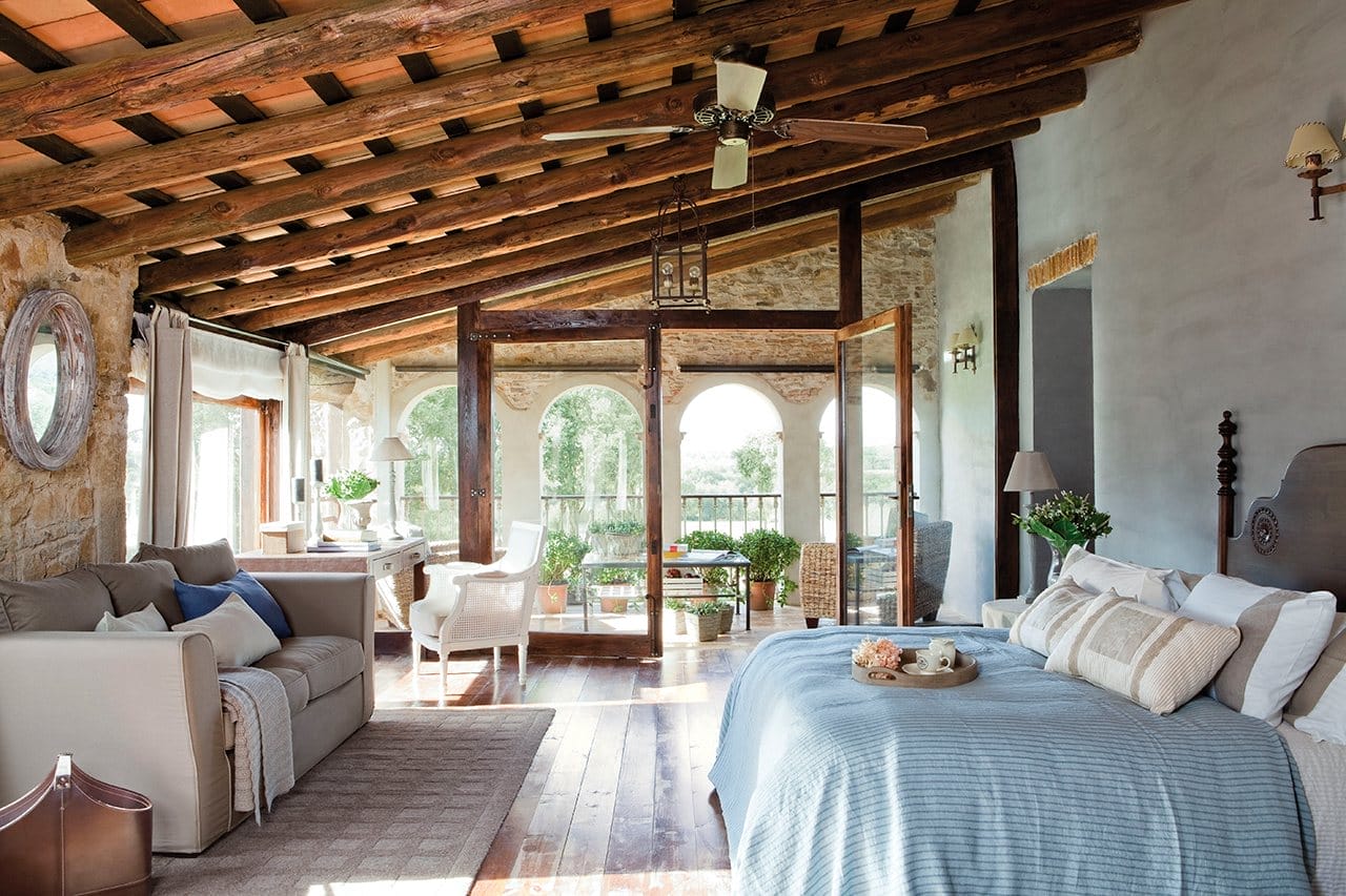 Accest dormitor este pur si simplu uimitor! Cine s-ar fi gandit ca poate crea ceva asemanator folosind lemn masiv pe post de tavan? Dormitorul este extrem de spatios si cu deschidere catre o terasa la fel de mare, insa ceea ce fascineaza este combinatia de clasic si modern, precum si senzatia ca nu mai ai nevoie de o alta incapere, in toata casa, pentru a te simti confortabil si relaxat, mai ales ca este inclusa si o canapea.