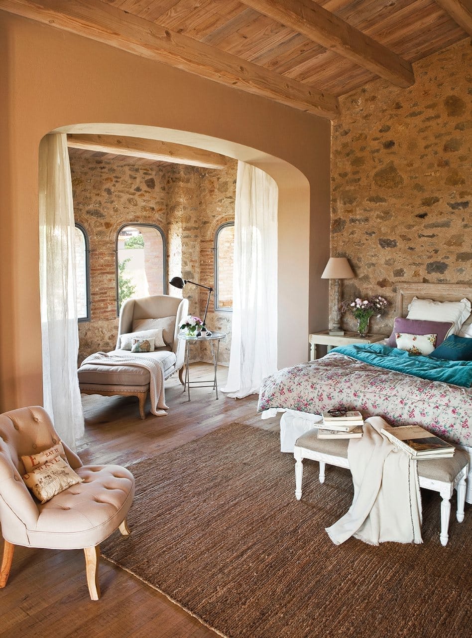 Cei interesati cel mai mult de confort, care vor ca patul sa fie in centrul atentiei, vor iubi acest dormitor. Si aici tot elementele vintage sunt protagoniste, iar pe langa pat, sezlongul de citit, amplasat imediat langa ferestrele mari, cu draperii lungi, inspira relaxare si ne aduce aminte de vacantele petrecute in Italia. Cam acesta este si stilul general al dormitorului, cu gresie si covor mic, ambele in stil italienesc.