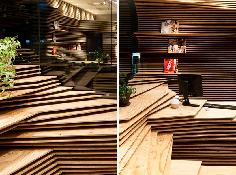 De cate ori auzim design modern, mintea ne duce cumva, fara sa vrem, la o atmosfera rece, metalica, la mobilier din otel sau, in orice caz la culori neutre si multa sticla. In practica, lucrurile nu stau tocmai asa. Lemnul poate fi folosit in moduri surprinzatoare, inclusiv pentru amenajarea unui spatiu modern. O demonstreaza un open-space restaurant din Osaka, Japonia. Shun shoku Lounge este un spatiu destinat discutiilor de relatii publice, fiind construit in interiorul unei cladiri mari, de sticla, dar care poate fi cu usurinta admiarata de catre trecatori.