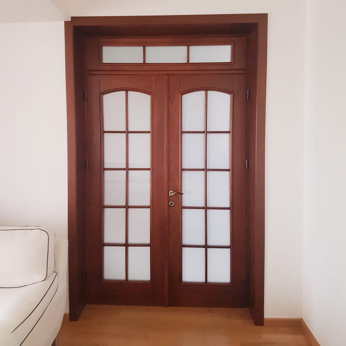Usa 2k cu supralumina, Tei masiv stratificat model M05 drept, finisaj Nuc, geam sablat alb.
