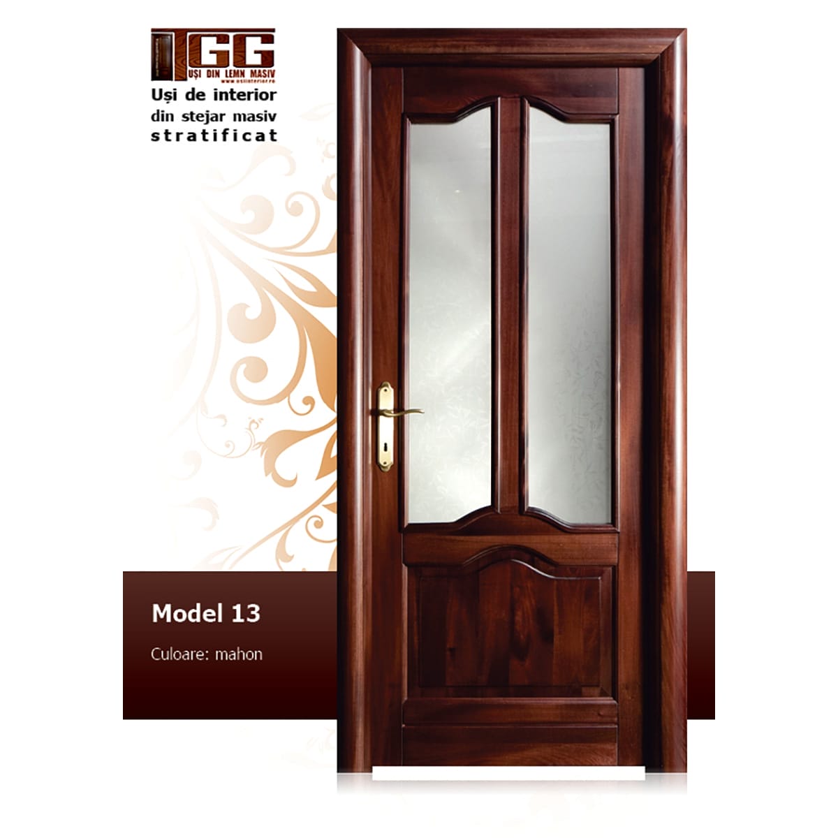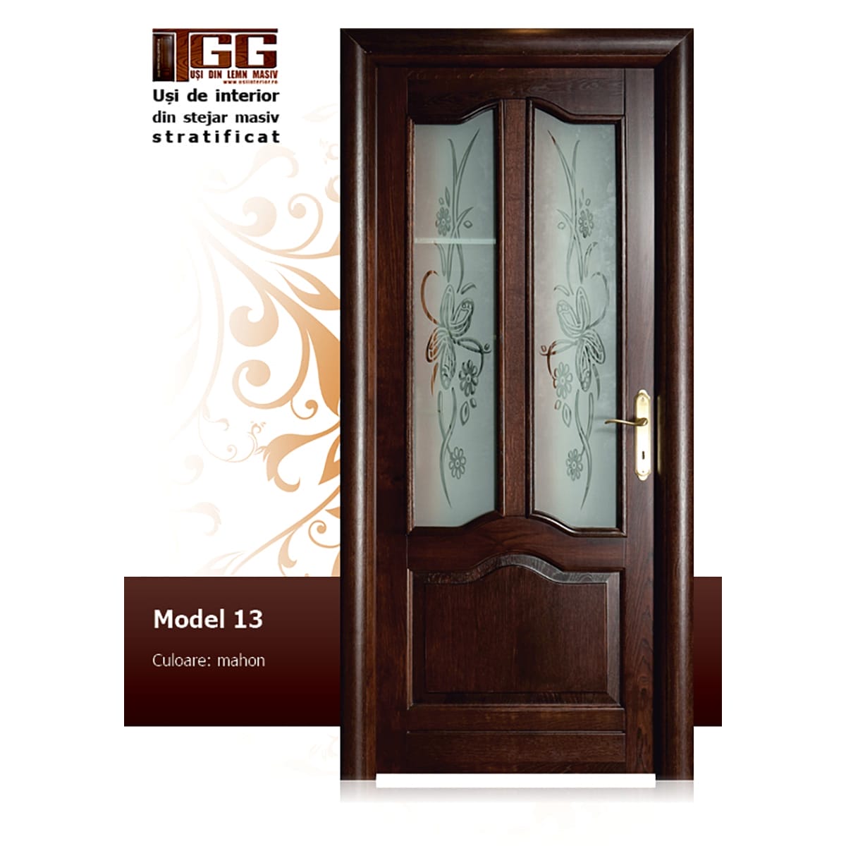 Usa de interior din Stejar Masiv Stratificat, finisaj mahon, 2/3 geam, ISM-013
