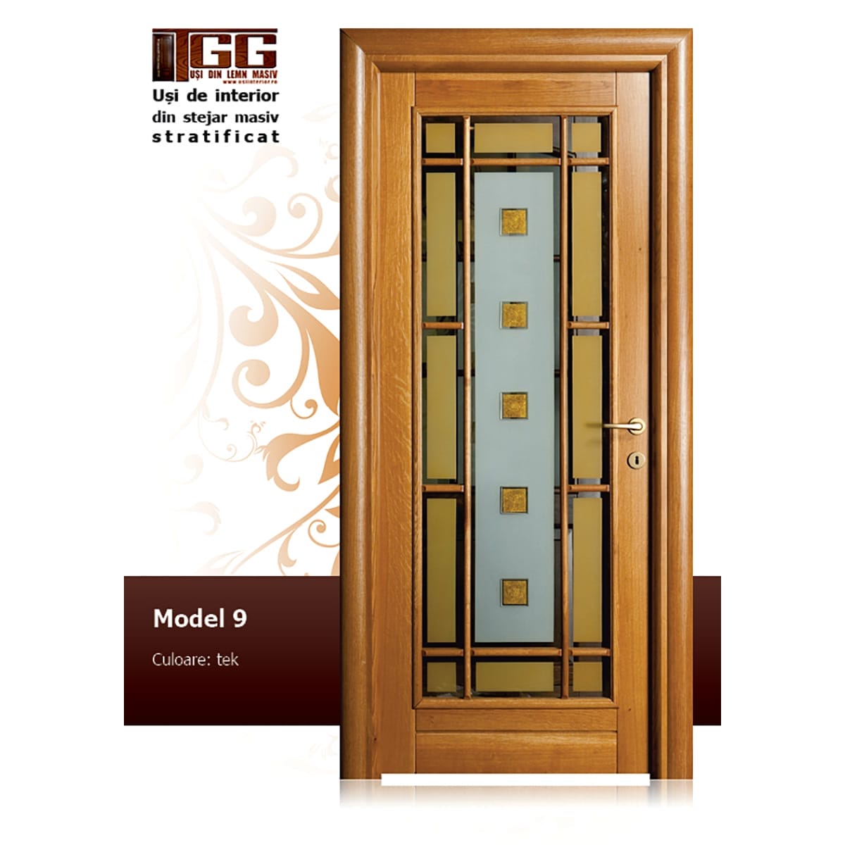 Usa de interior din Tei Masiv Stratificat, finisaj tek, modern, ITM-009
