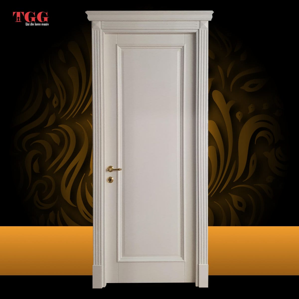 Usa interioara baghetata reprezentata în imagine este din tei masiv stratificat, finisaj alb pervaz Capitel Cornisa.