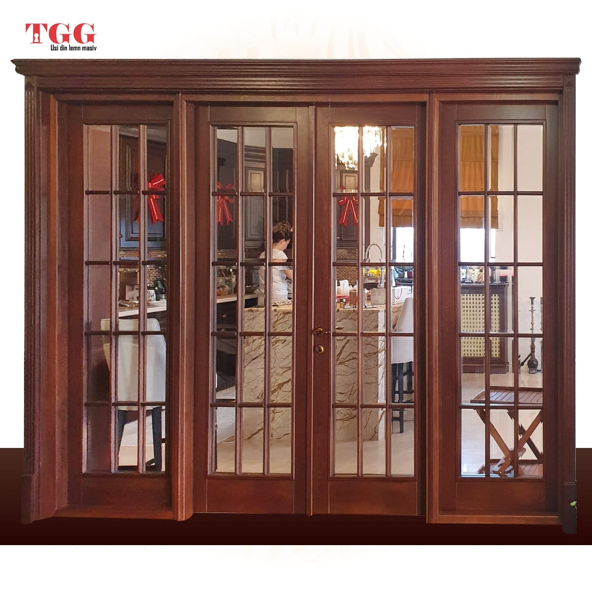Usa interioara reprezentata în imagine este din tei masiv stratificat model french, finisaj nuc cu pervaz Capitel Cornisa Bumbi