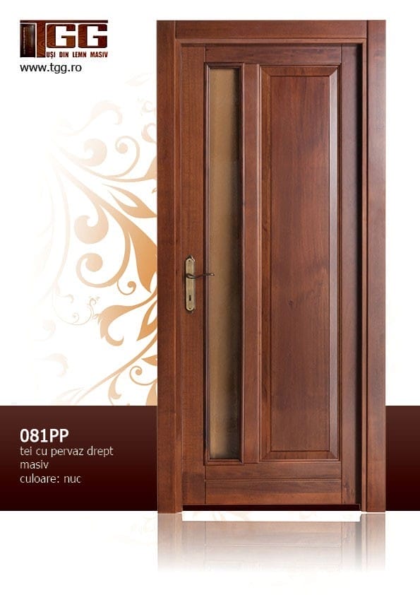 Usa de interior din Tei Masiv Stratificat, cu pervaz drept masiv, finisaj nuc, ITM-081PP